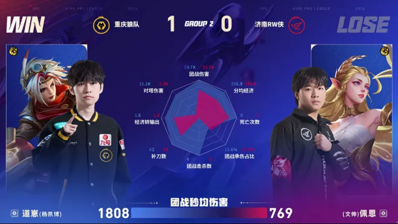虎扑01月23日讯 狼队/RW第一局数据图:清清白起开团成功率百分百